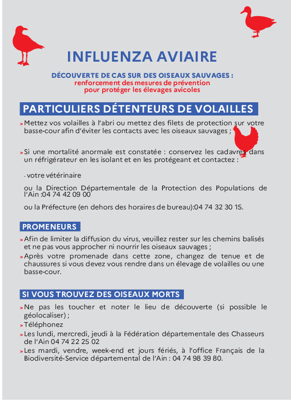 Influenza aviaire : La commune de Béréziat placée dans un périmètre de protection