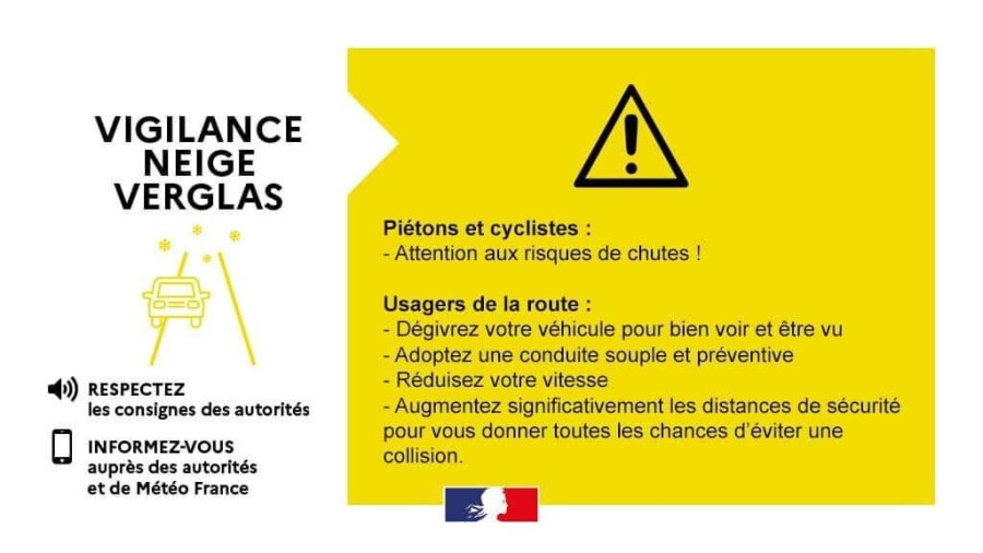 le département passe de la vigilance orange à la vigilance jaune NeigeVerglas.
