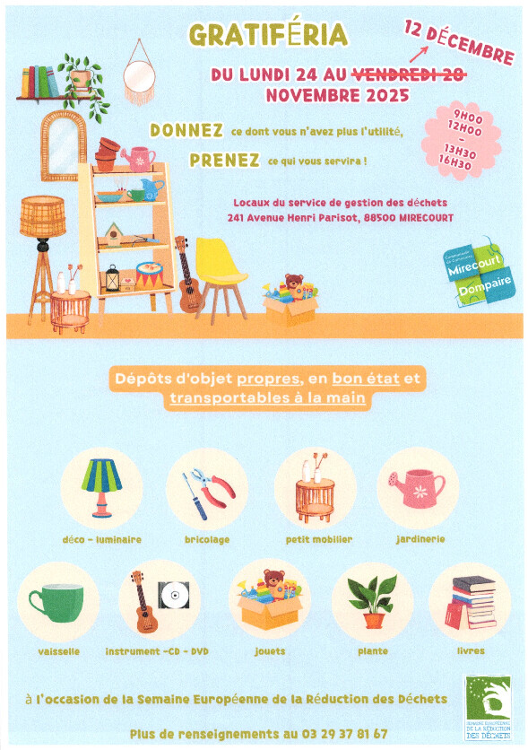 Ci joint une photo des dernières trouvailles ainsi que les consignes de tri du verre et les horaires de la déchetterie.
