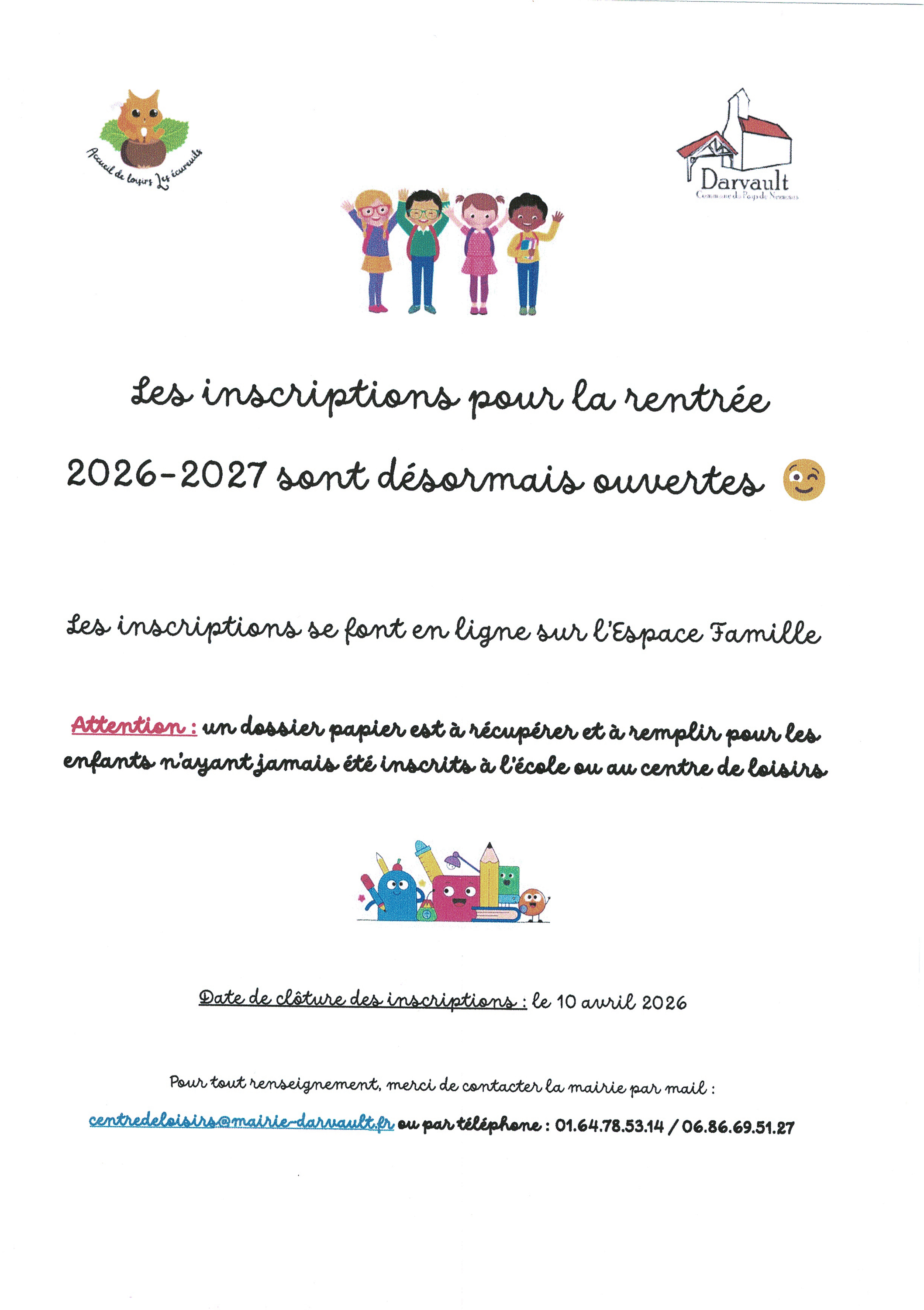 🎒 L'heure de préparer la rentrée approche ! Les inscriptions pour l'école sont désormais ouvertes. Parents, pensez à inscrire vos enfants pour une nouvelle année riche en découvertes et en apprentissages ! Pour plus d'informations, rendez-vous en mairie ou contactez-nous !