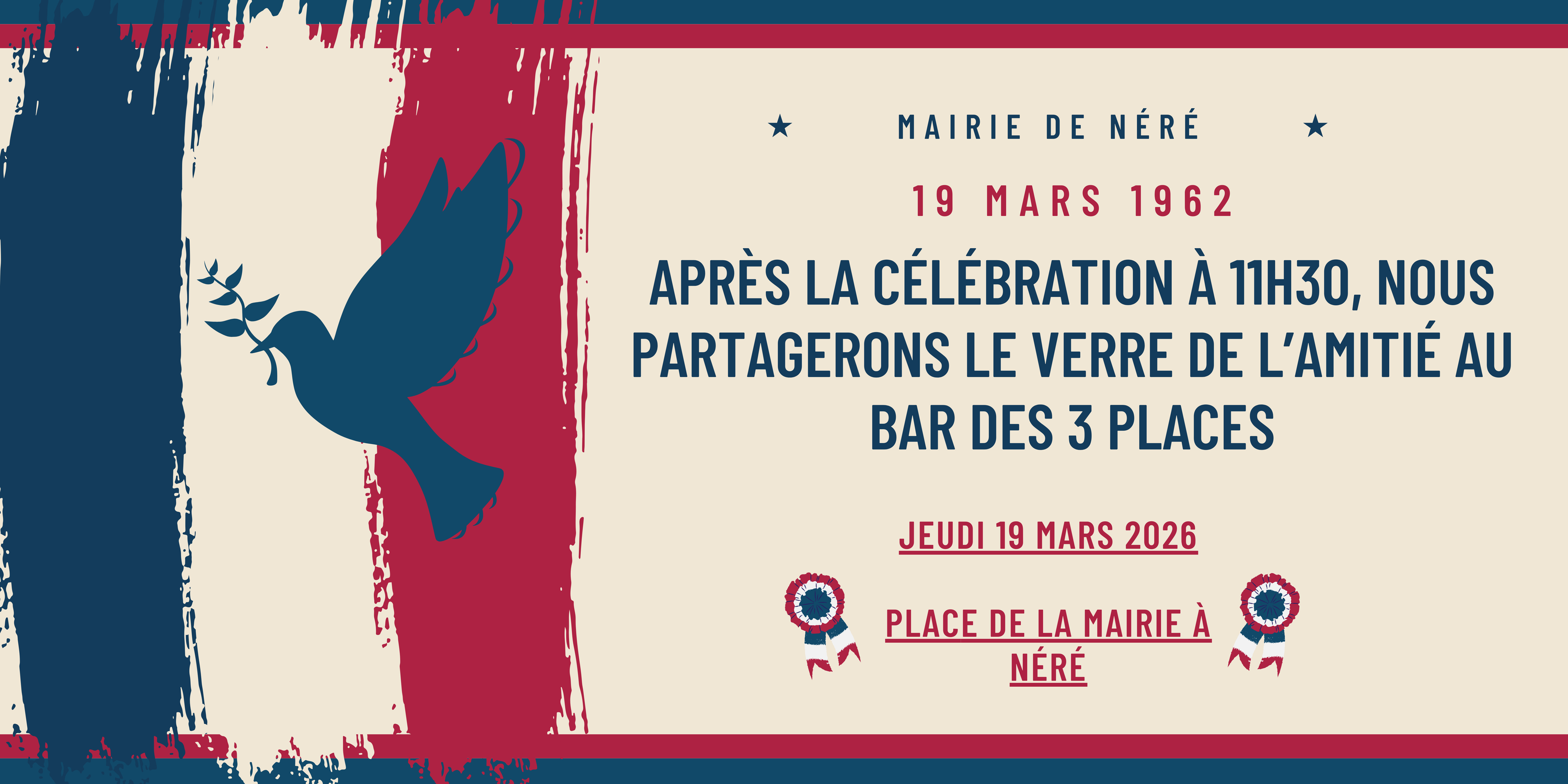 Vous êtes conviés à la Cérémonie du 19 mars 1962 - Place de la Mairie à 11h30.