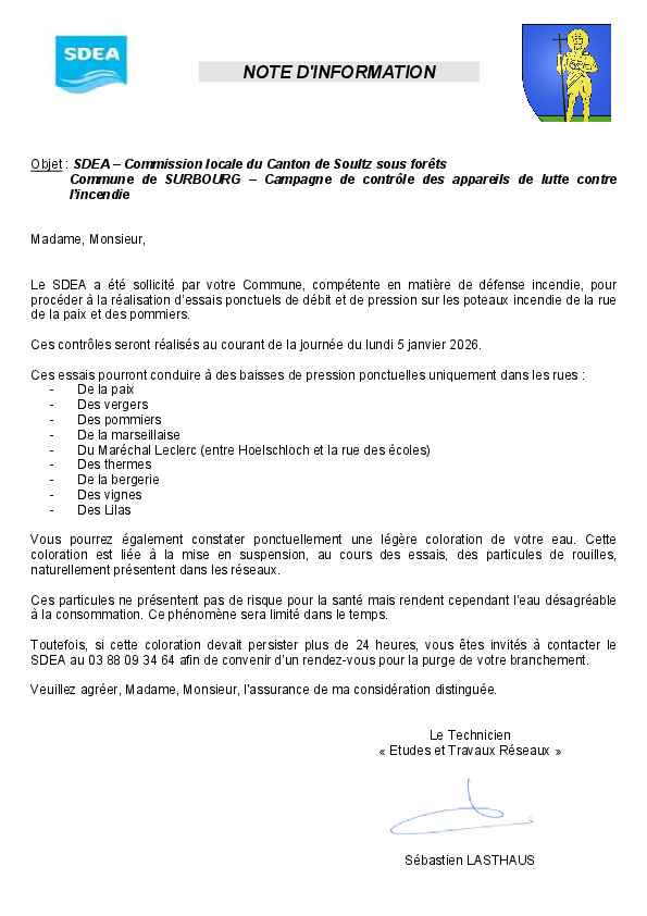 éventuelle baisse de pression de la distribution d'eau potable liée à une