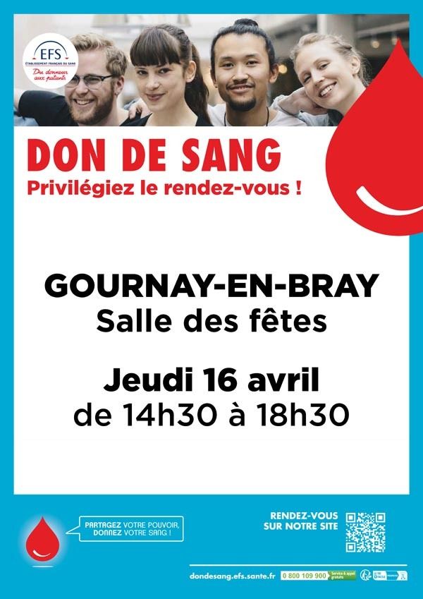 📅 Jeudi 16 Avril de 14h30 à 18h30 à la salle des fêtes de GOURNAY EN BRAY.
