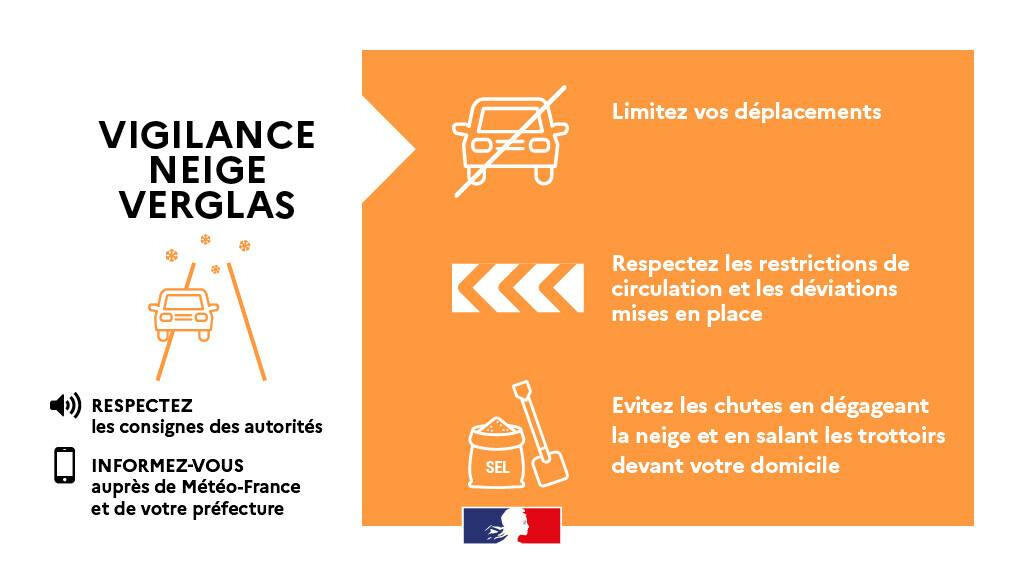 ➡️ Sur le reste du département, le risque portera surtout sur du verglas et des pluies verglaçantes.