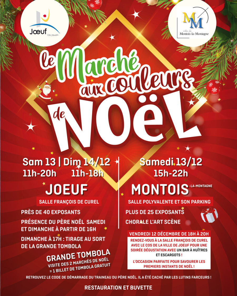Cette année encore, les « Marchés aux couleurs de Noël » de Joeuf et Montois-la-Montagne s’unissent pour vous offrir un petit bonus magique !