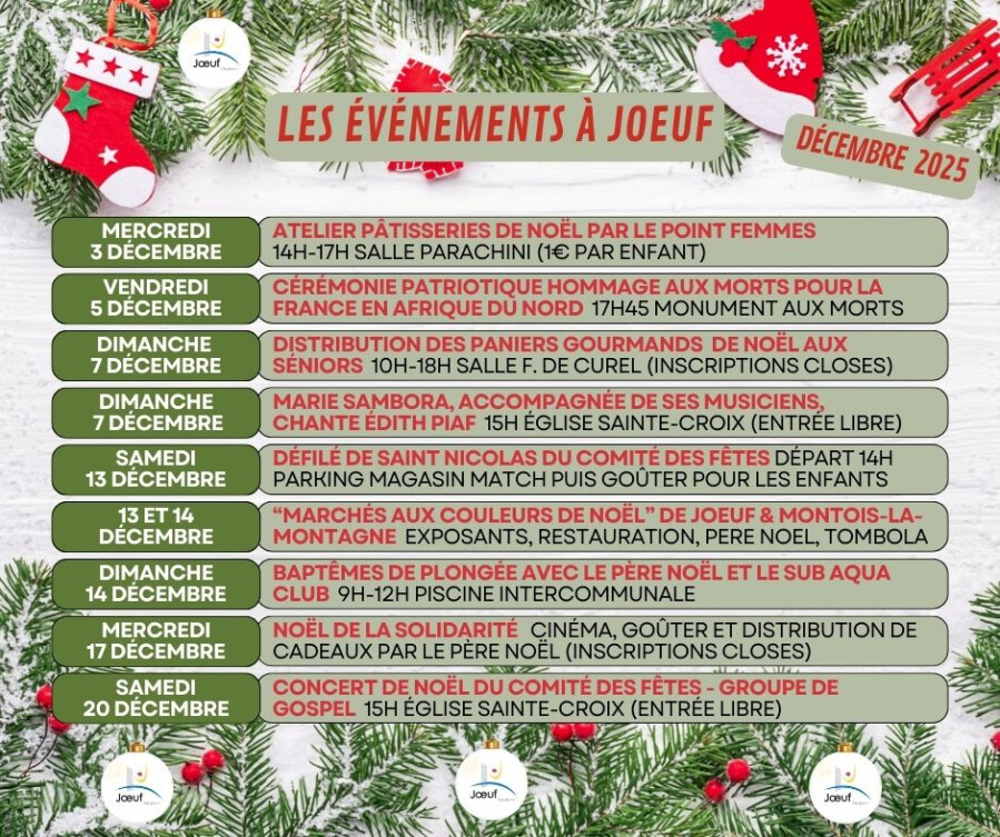 Joeuf : samedi 13 décembre (11h-20h) & dimanche 14 décembre (11h-18h) amis aussi vendredi 12 septembre (9h-12h sur le marché hebdomadaire).