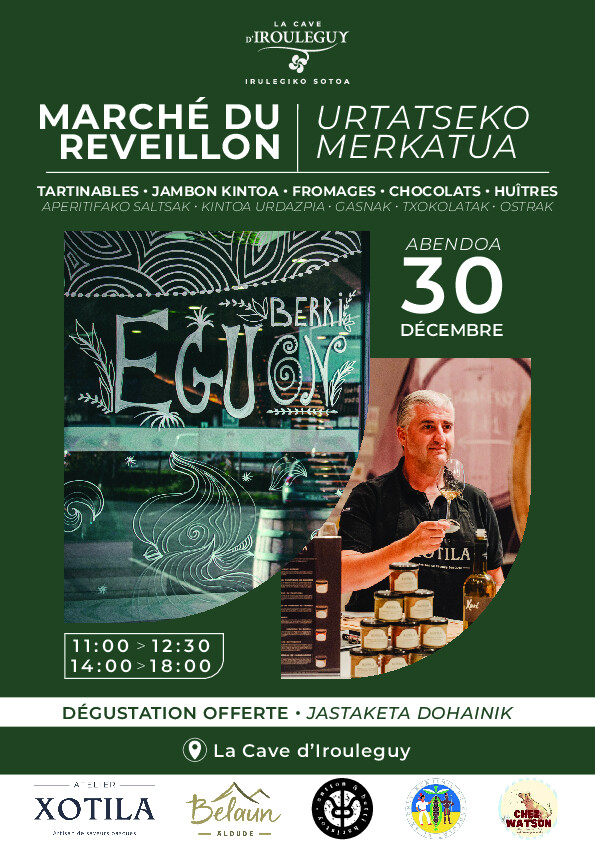 À l’approche des fêtes, La Cave d’Irouléguy vous donne un rendez-vous unique le mardi 30 décembre 2025 pour son Marché du Réveillon, un événement placé sous le signe du partage, des gourmandises artisanales et bien sûr… des vins basques !