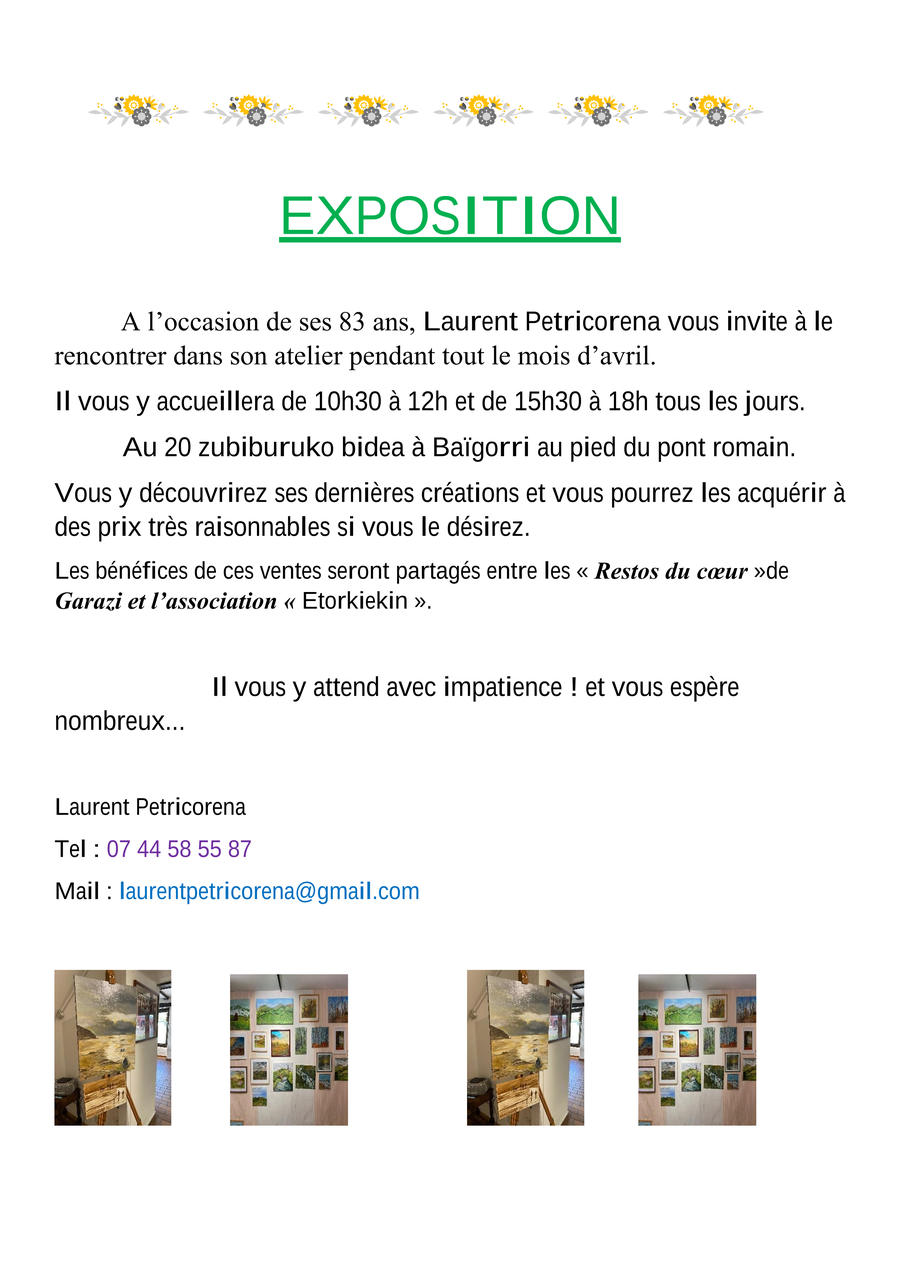 Pour vous inscrire merci de contacter EHLG : 05 59 37 18 82,
