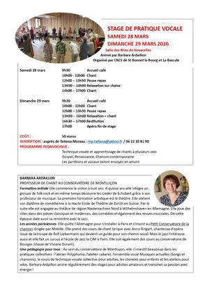 L'ACS de St Bonnet Le Bourg et La Bascule vous proposent un stage de pratique vocale les 28 et 29 mars 2026