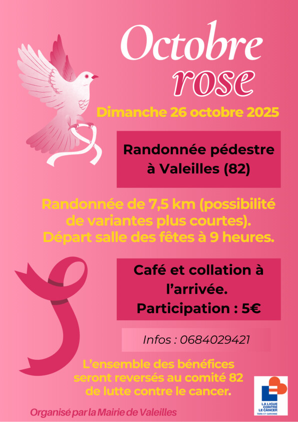 Randonnée pédestre le dimanche 26 octobre au profit de la ligue contre le cancer.