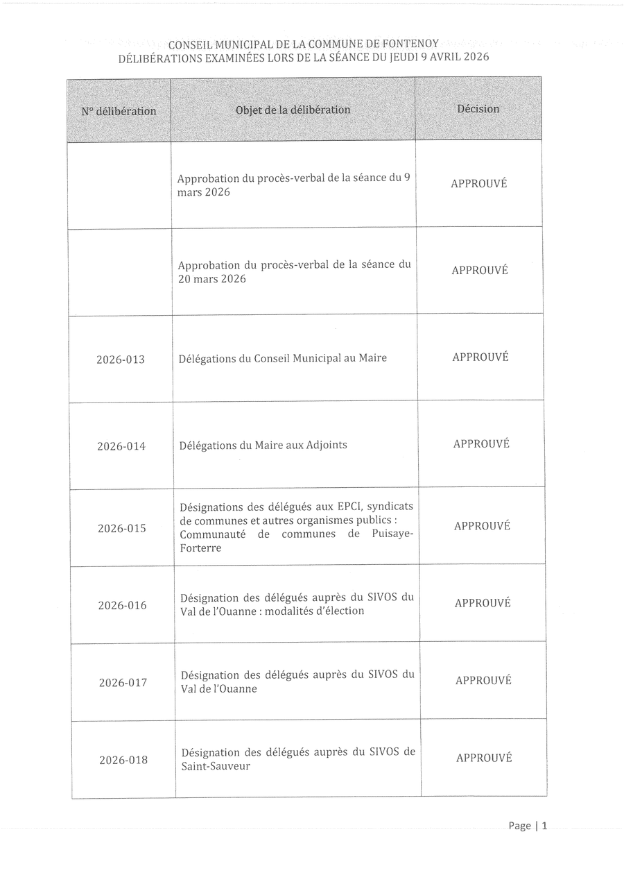 Publication de la liste des délibérations votées et des sujets discutés