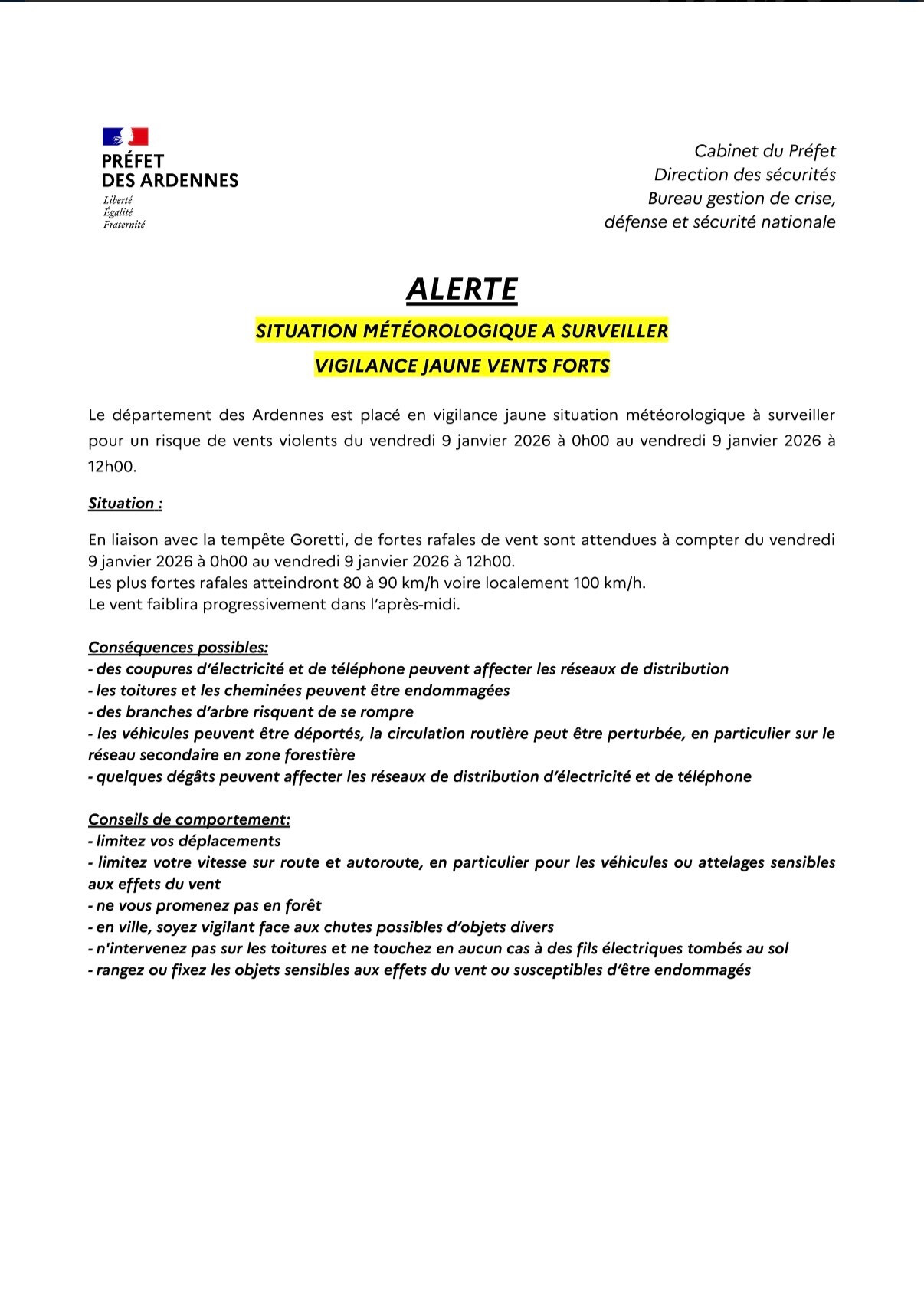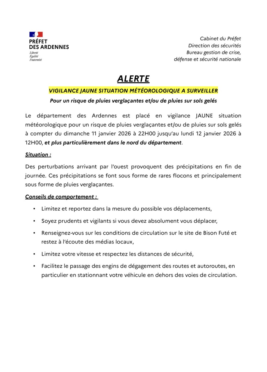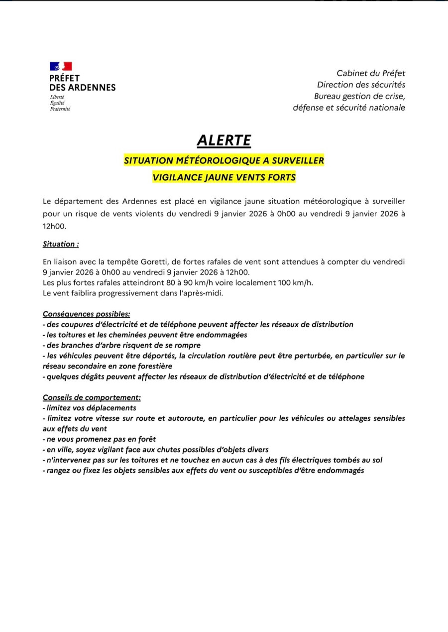 Le Préfet des Ardennes appelle chacun à la plus grande vigilance 🙏