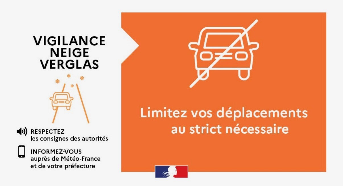 Le département est placé en vigilance orange neige et verglas pour la journée du mercredi 7 janvier 2026.