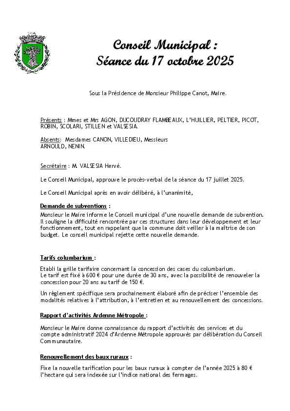 Le secrétariat de Mairie sera fermé du lundi 27 au mercredi 29 octobre 2025 inclus.