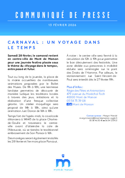 Grenade sur l’Adour : lundi 23 février 2026 à 14h au parking du Centre Socio Culturel