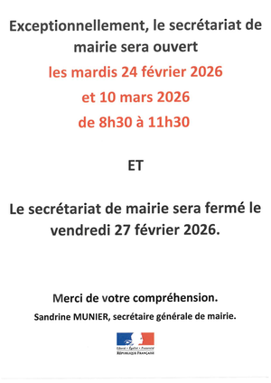 horaires ouverture secrétariat :