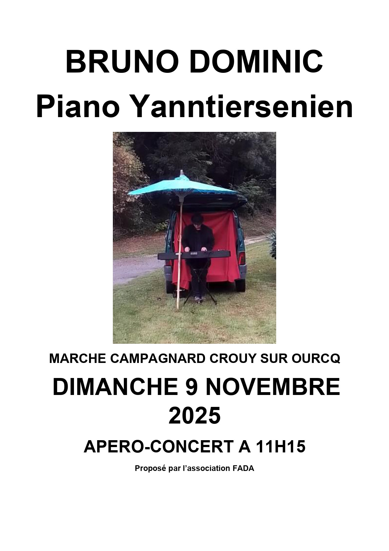 noter également, une animation musicale à 11H15 : Bruno Dominic, pianiste dans la lignée de Yann Tiersen.
