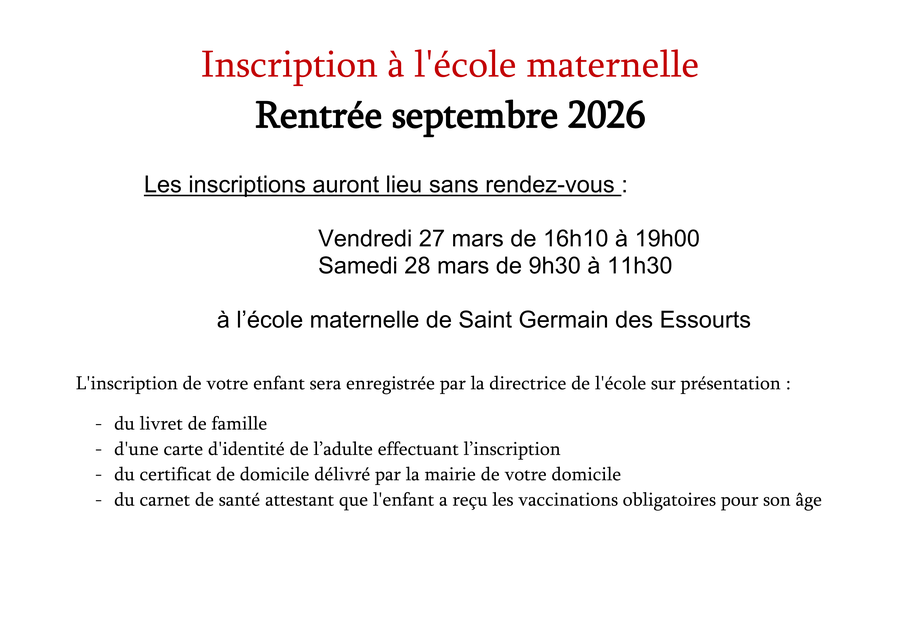 N'oubliez pas de passer en Mairie pour avoir le certificat de domicile pour votre enfant.