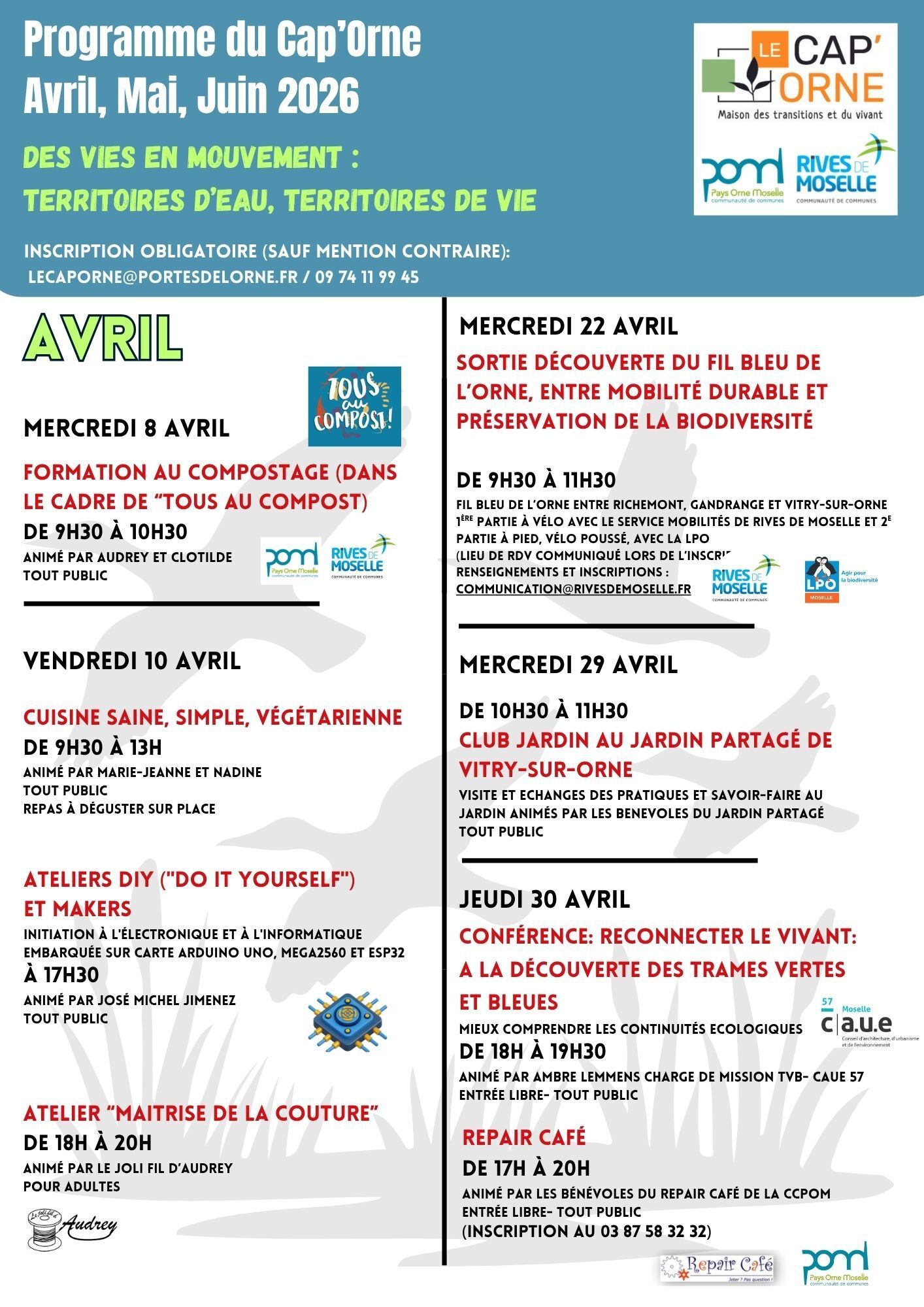 🛠️ Et toujours nos rendez-vous réguliers : Ateliers cuisine et couture, Formations au compostage, Repair Café, Ateliers Arduino, Café-Sidé, Cafés numériques