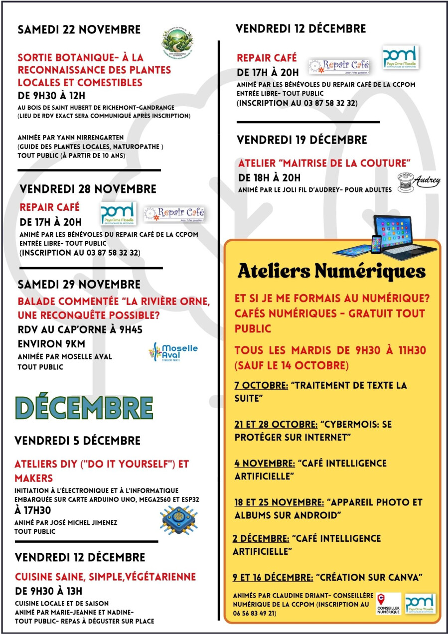 🛠️ Et toujours nos rendez-vous réguliers : Ateliers cuisine & couture, Formations au compostage, Repair Café, Ateliers Arduino, Cafés numériques