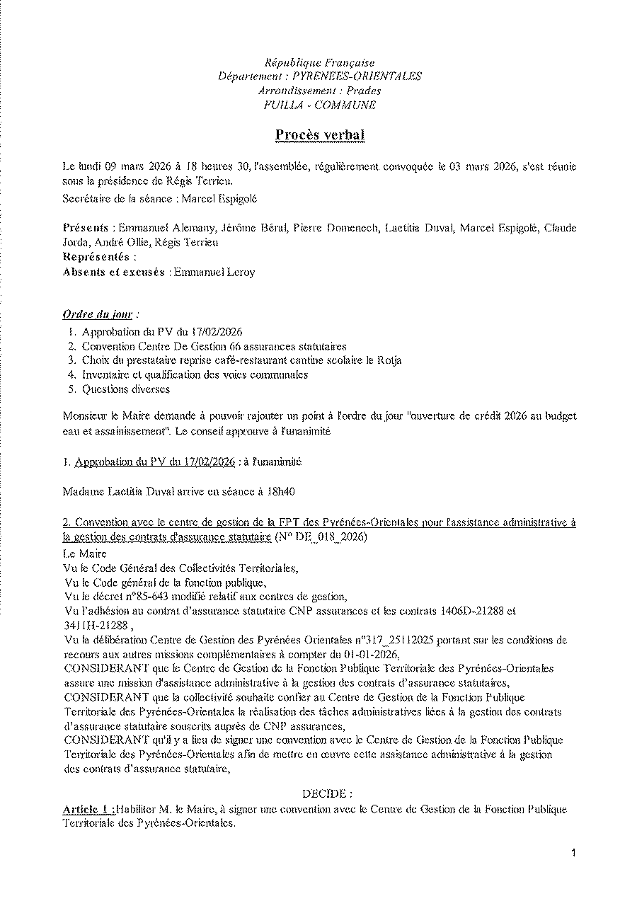 Compte-rendu et PV des séance du 09.03.2026 et 20.03.2026