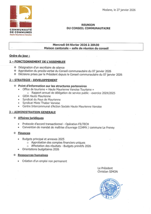 Veuillez trouver ci-dessous le procès-verbal de la réunion du conseil municipal du 09/12/2025 et la liste des délibérations du 14/01/2026