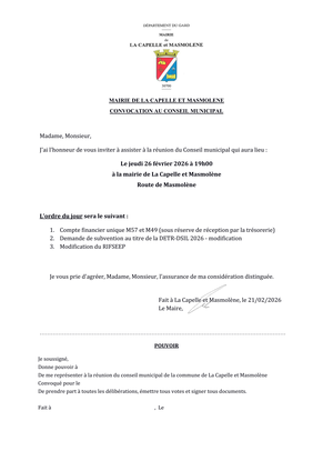 Le prochain conseil municipal aura lieu le jeudi 26 février à 19h en mairie