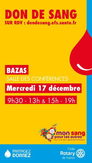 La collecte « Mon Sang Pour Les Autres » organisée en partenariat avec le Rotary club de Bazas revient pour la 2ème fois