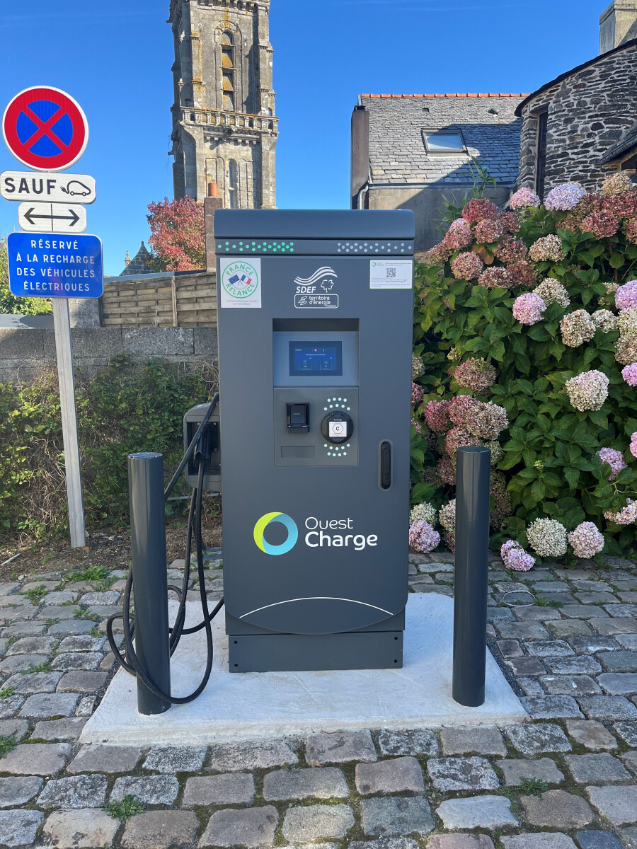Grâce à un partenariat entre le Syndicat Départemental d'Energie du Finistère (SDEF) et l'entreprise Bouygues Energie et Services, la commune vient d'installer une première borne de recharge électrique, Place du Villers.