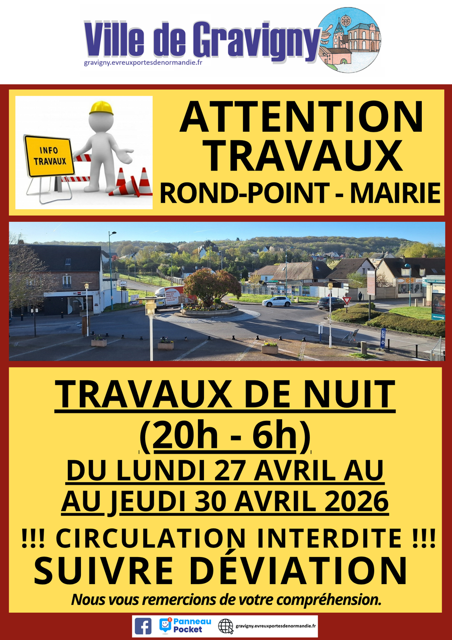 => Du lundi 27 au jeudi 30 avril 2026 : travaux de nuit (20h / 6h)