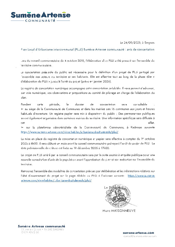 ou en contactant Sumène Artense Communauté 04.71.40.62.66.