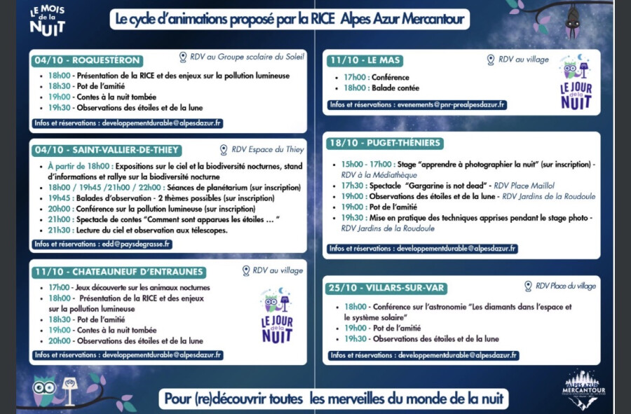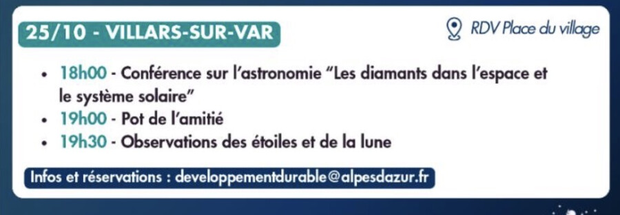 La Communauté de Communes Alpes d'Azur et la commune de Villars-sur-Var vous invitent à une soirée exceptionnelle à l’occasion de la clôture du Mois de la Nuit.