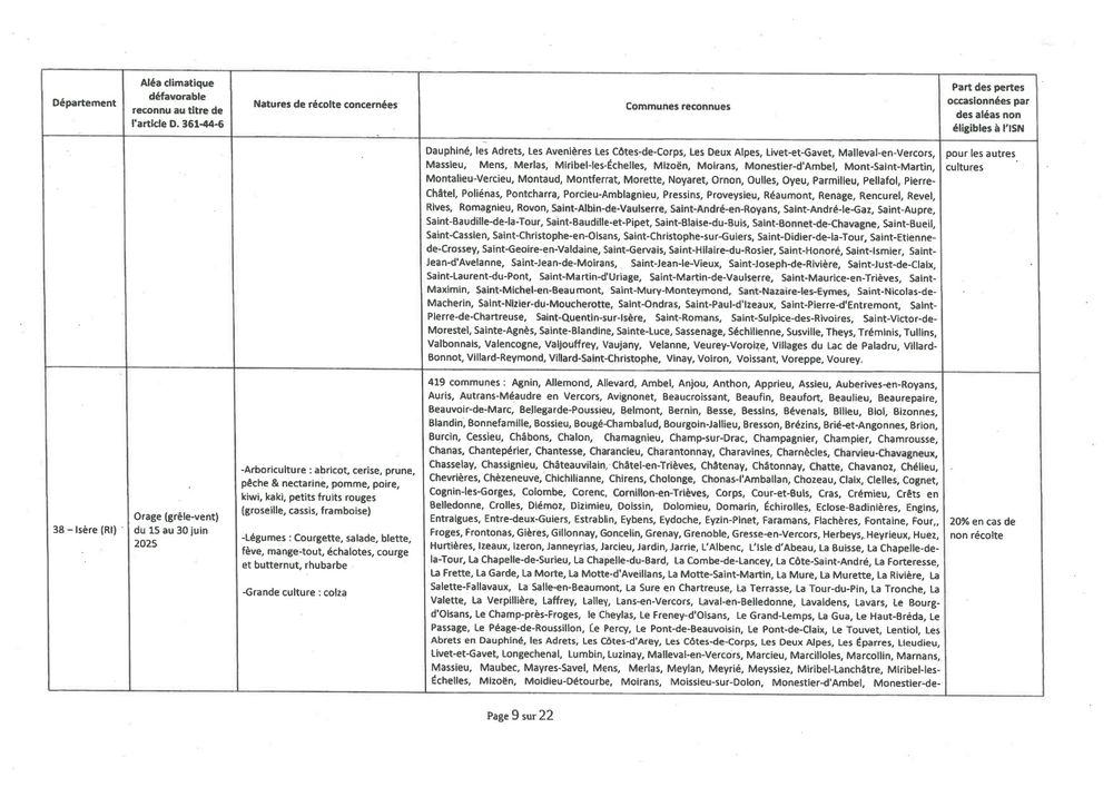 pour la reconnaissance initiale pour pertes de récoltes sur colza, abricot, cerise, prune, pêche et nectarines, pomme, poire, kiwi, kaki, rhubarbe, petits fruits rouges (groseille, cassis, framboise); courgette, salade, blette, fève, mange-tout, échalote, courge, butternut, suite aux orages (pluie et vent) du 15 au 30 juin 2025