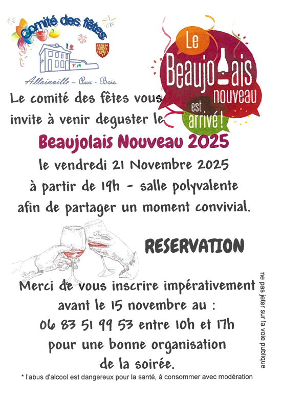 Le comité des fêtes vous propose de goûter le beaujolais nouveau !