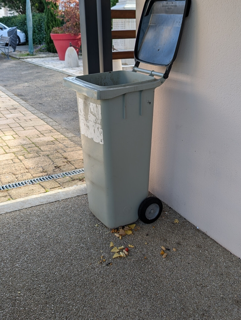 2) Pour les usagers de l'espace derrière la Mairie: C'est bien d'utiliser la poubelle mais il faut mieux viser.