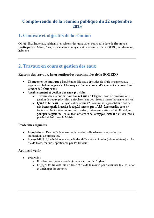 Si il y a des problèmes ne pas hésiter à en informer la mairie.