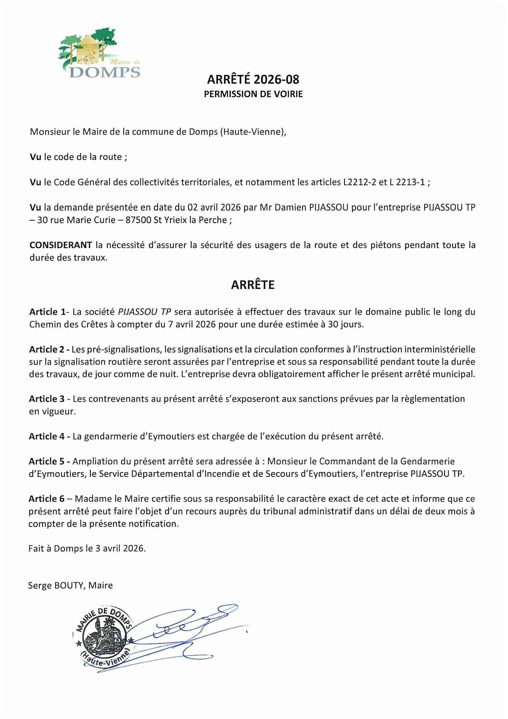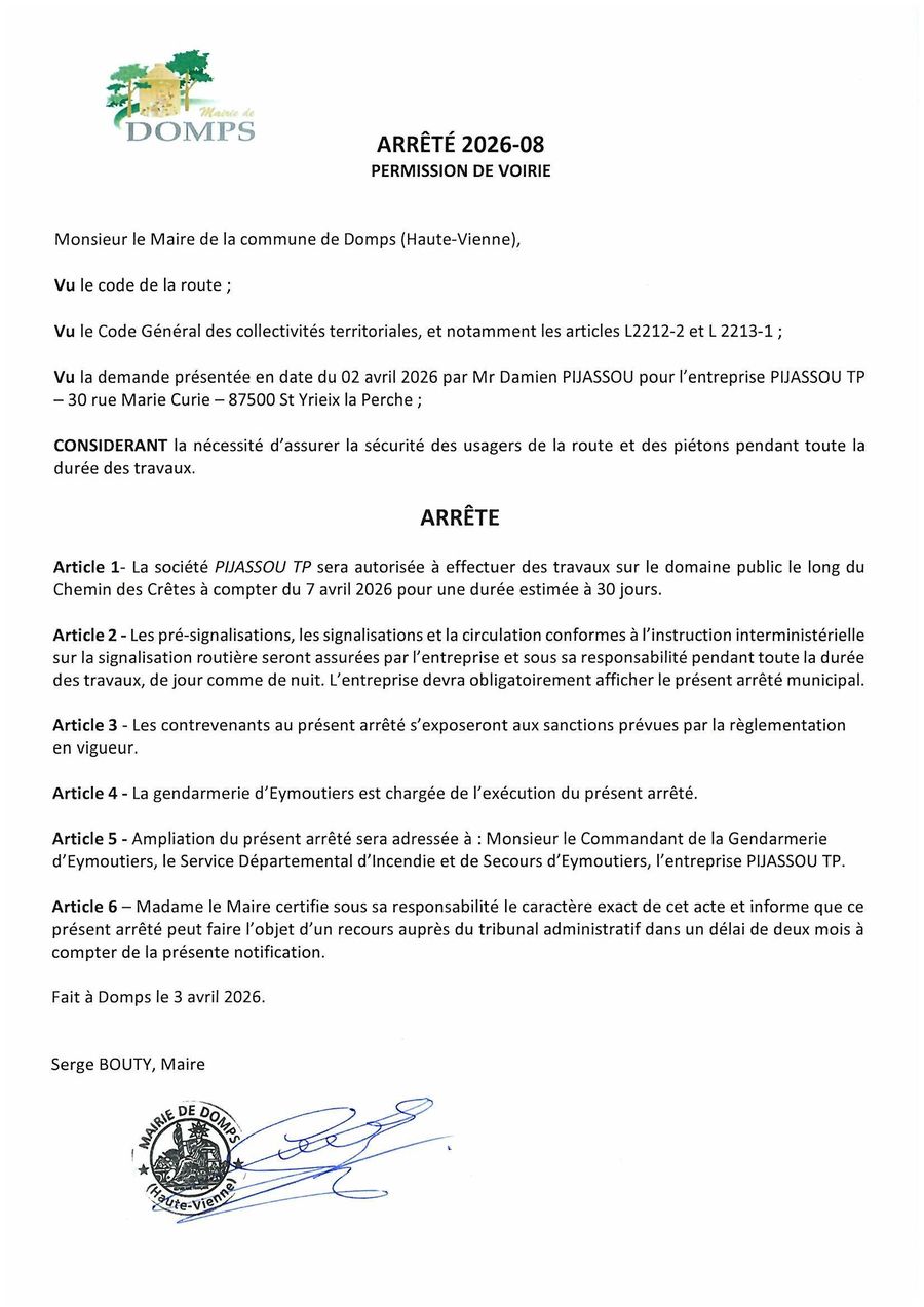 7 rue de la Mairie 87120 Domps