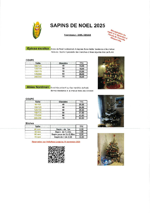 L'association des parents d'élèves organise comme chaque année une vente de sapins de Noël afin de financer les projets et sorties des enfants.