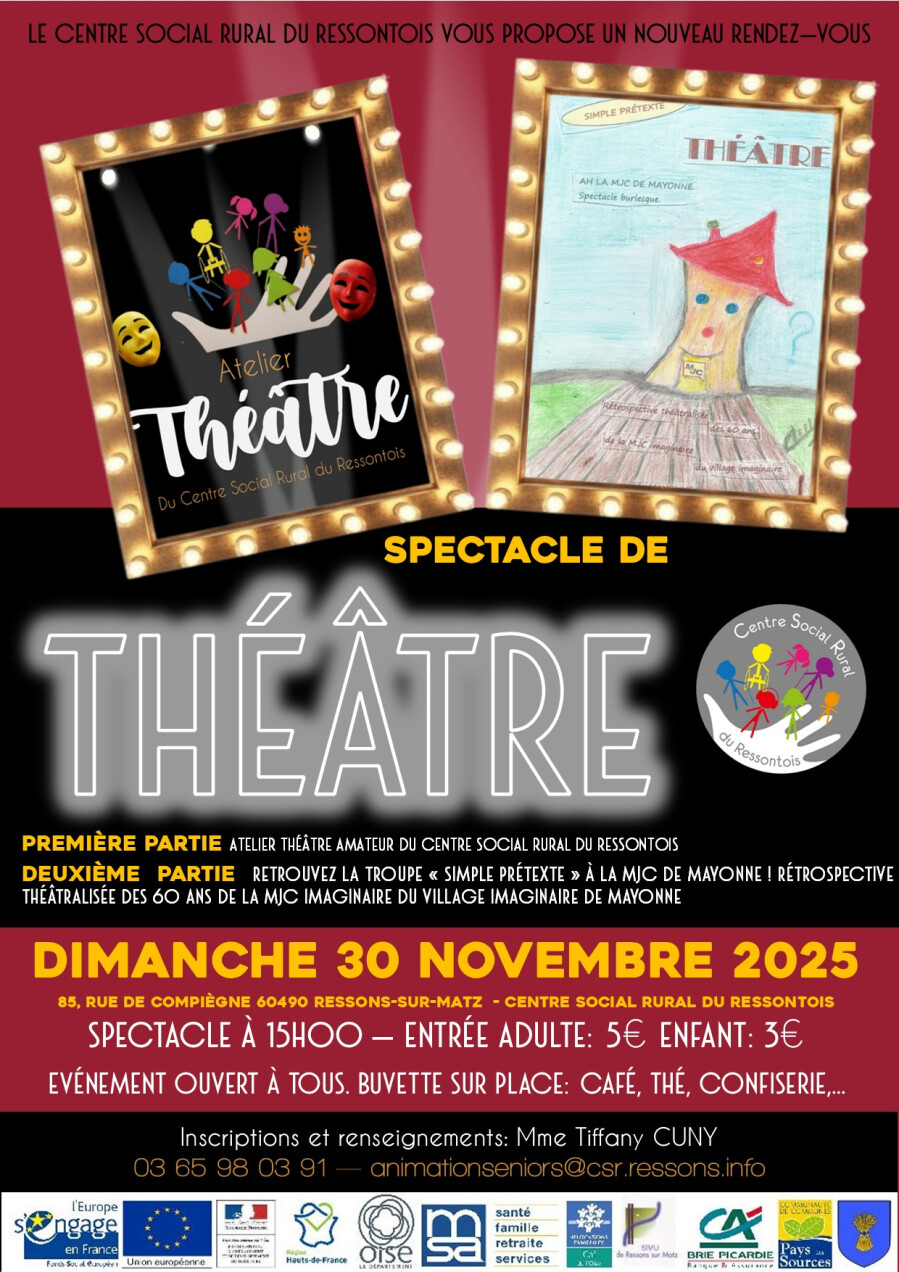 Le dimanche 30 novembre 2025, venez découvrir le travail de l’atelier théâtre amateur du Centre Social Rural du Ressontois !