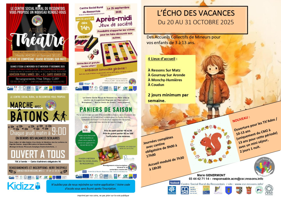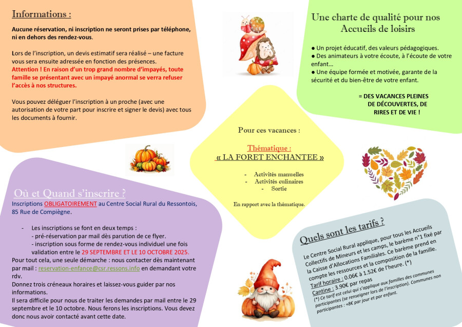 5 € adhésion annuelle au Centre Social Rural (si vous ne l’avez pas déjà)