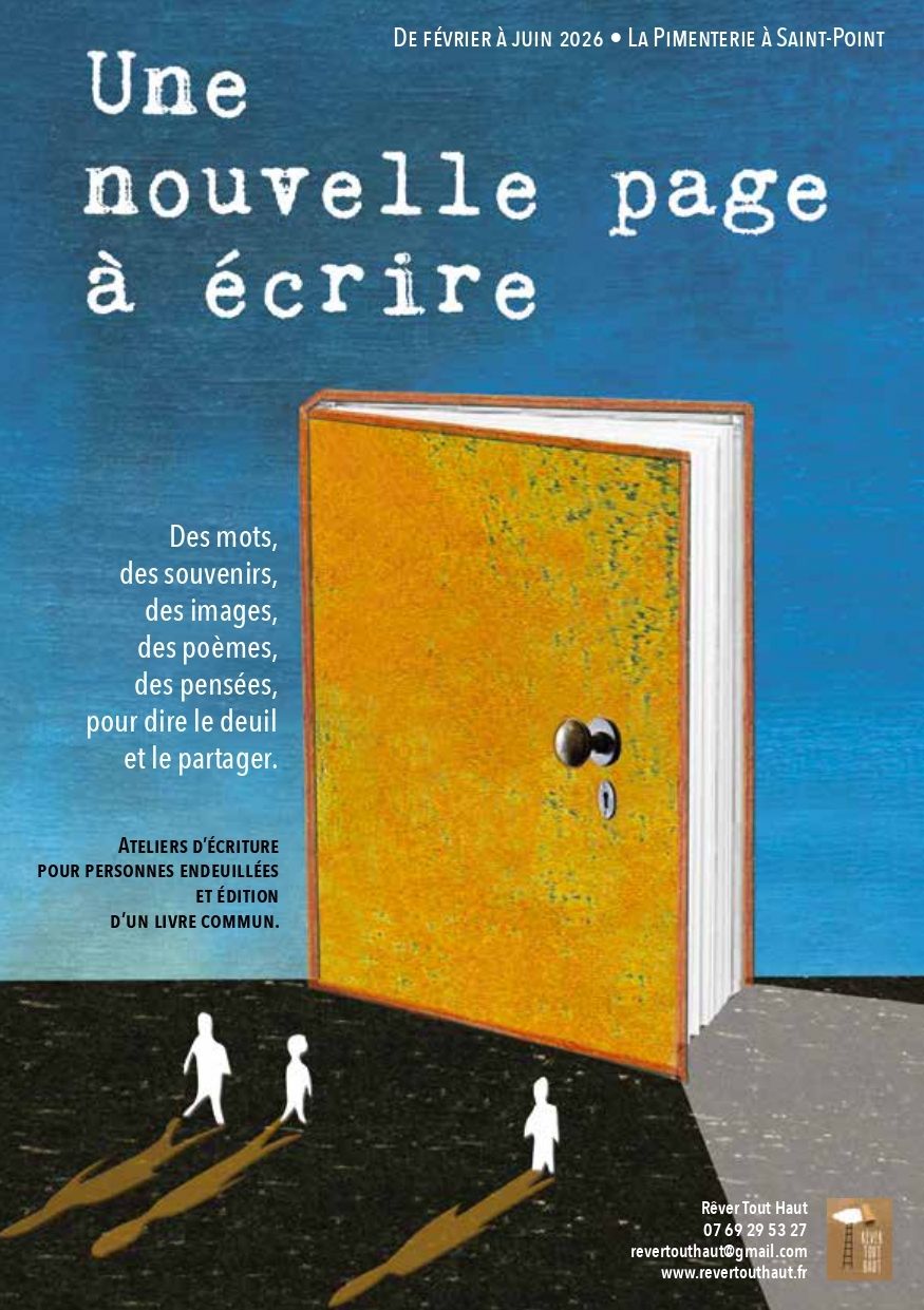 Cycle d’ateliers d’écriture autour du deuil, ouvert à toute personne se sentant concernée par cette expérience intérieure, qu’elle soit vécue dans le cadre familial, amical, ou professionnel.