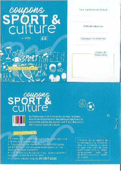 Ces coupons peuvent être utilisés auprès de toutes les associations sportives (basket-ball, football, natation, rugby...) et culturelles du Pays Tarusate.