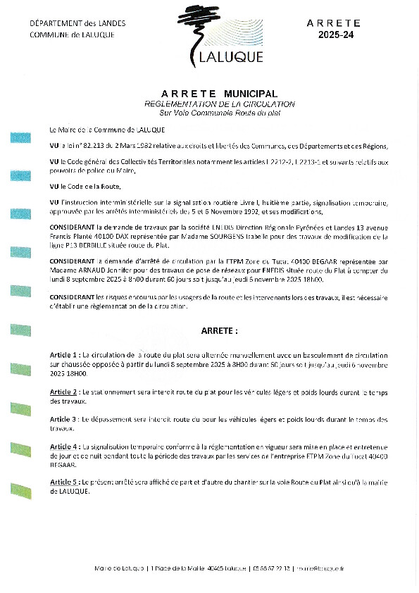 Les propriétaires concernés et la mairie seront prévenus précisément des dates de travaux qui auront lieu sur la période