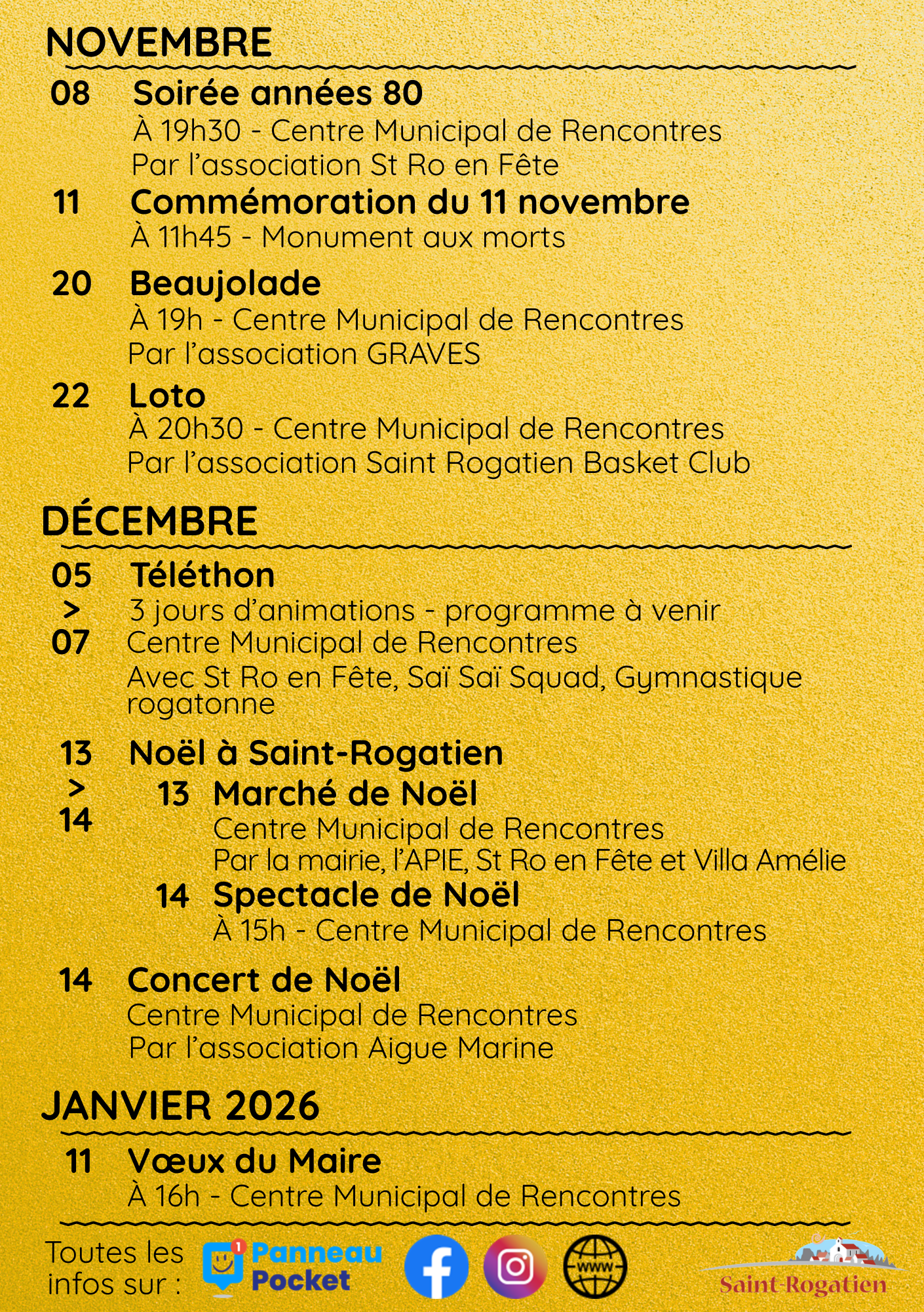 - samedi 22 : loto, par Saint-Rogatien Basket Club - 20h30