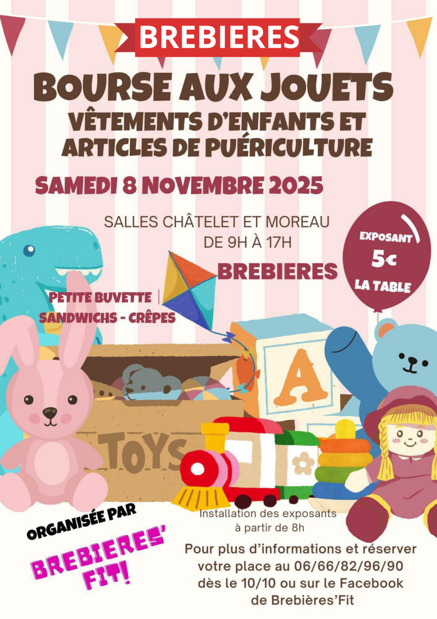 Le samedi 8 novembre se déroule de 09h00 à 17h00, salle Le Châtelet, une bourse aux jouets et vêtements d'enfants et articles de puériculture.