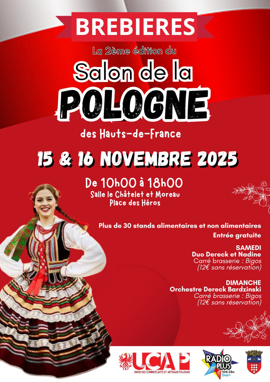 Pour la seconde édition, venez découvrir toutes les spécialités Polonaise lors du "Salon de la Pologne" organisé par l'Union des Commerçants et Artisans Polonais qui se déroulera le samedi 15 et dimanche 16 novembre dans les salles Châtelet et Moreau de 10h00 à 18h00.