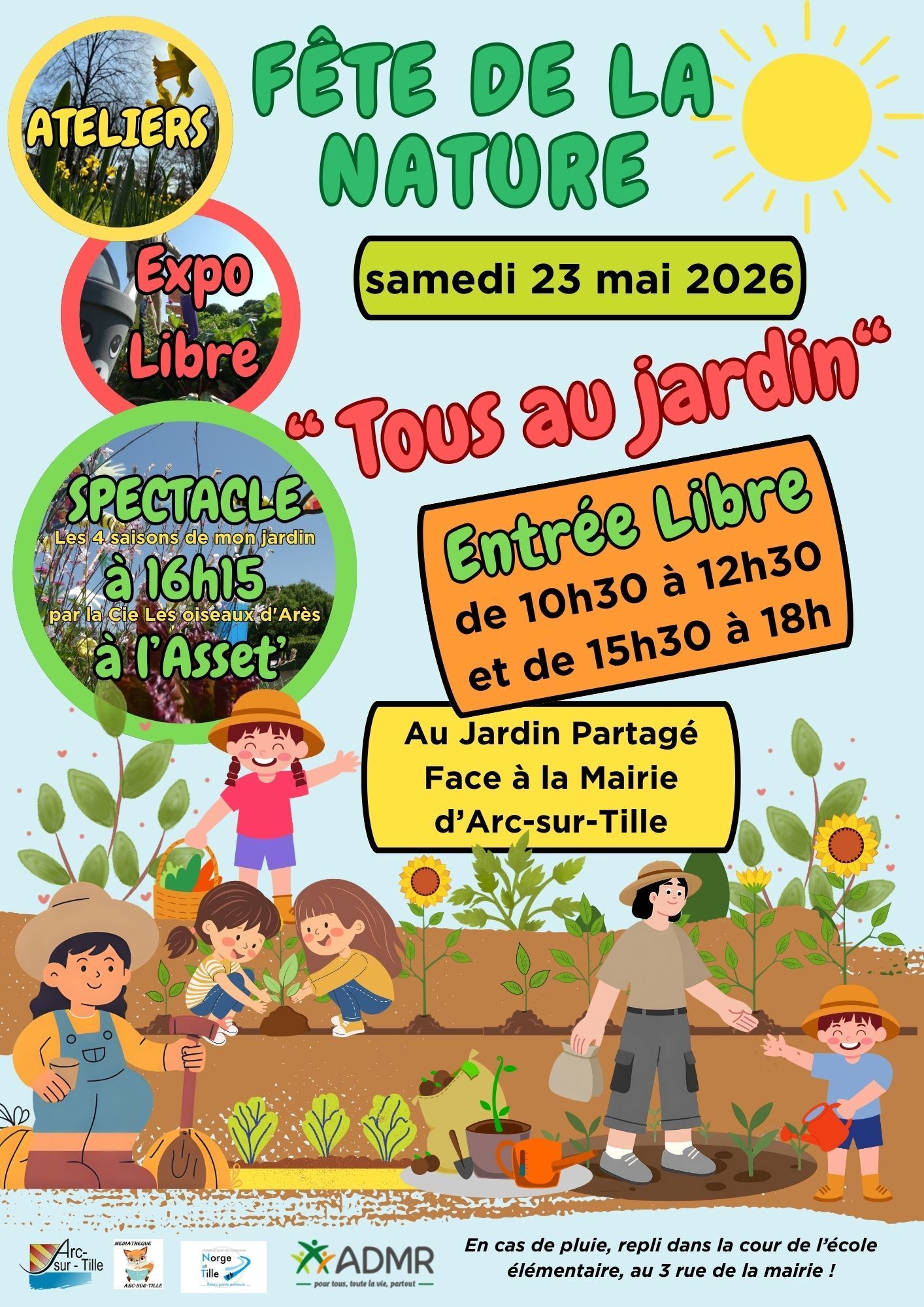 Venez le samedi 23 mai 2026 partager un moment en famille autour de la nature et du jardin, au jardin partagé d'Arc-sur-tille en face de la Mairie