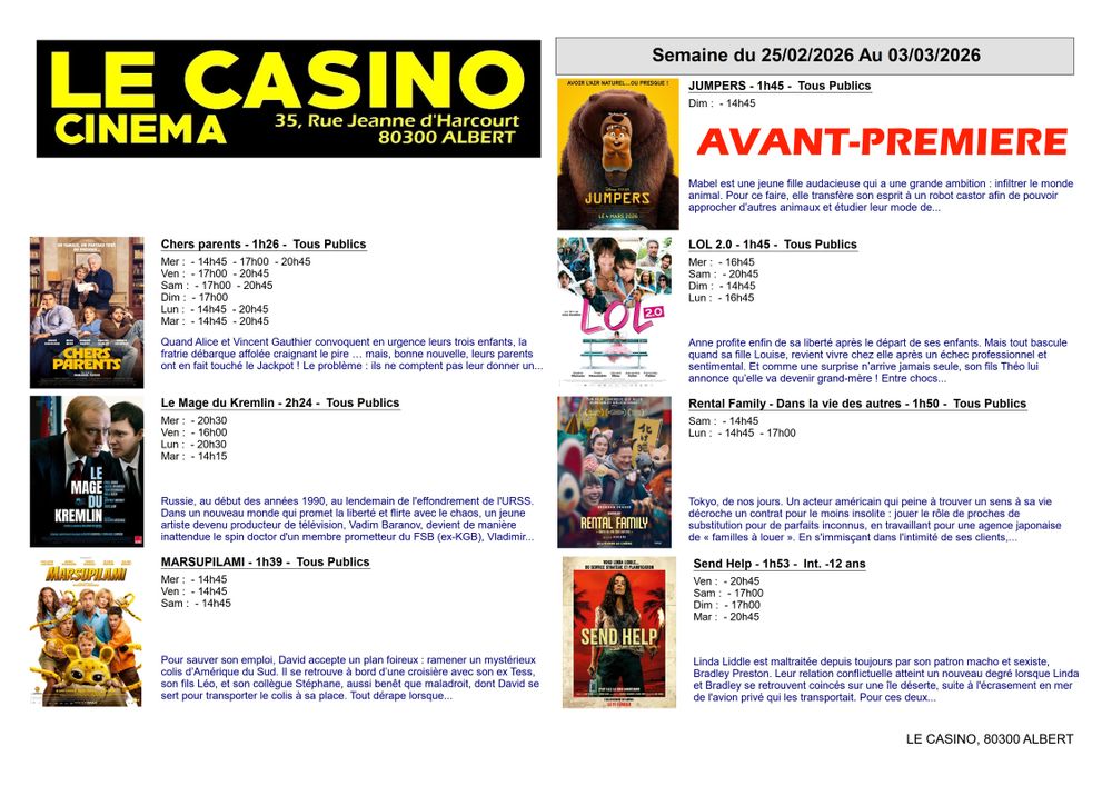 Jeudi 5 mars, à 19h, au cinéma Le Casino d'Albert - entrée gratuite.