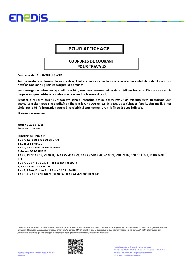 Vous trouverez en pièce jointe une note d'information précisant les horaires de coupure et les lieux concernés.