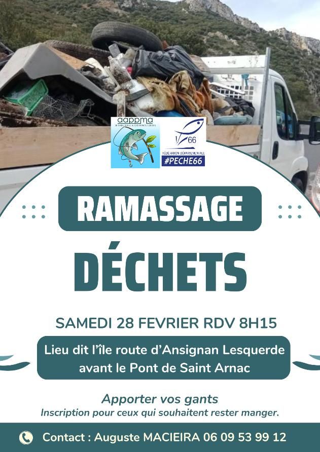 L'Association Agrée de Pèche et de Protection des Milieux Aquatiques vous invitent à venir participer, au nettoyage du bord de la rivière entre Saint Paul de Fenouillet et Ansignan.